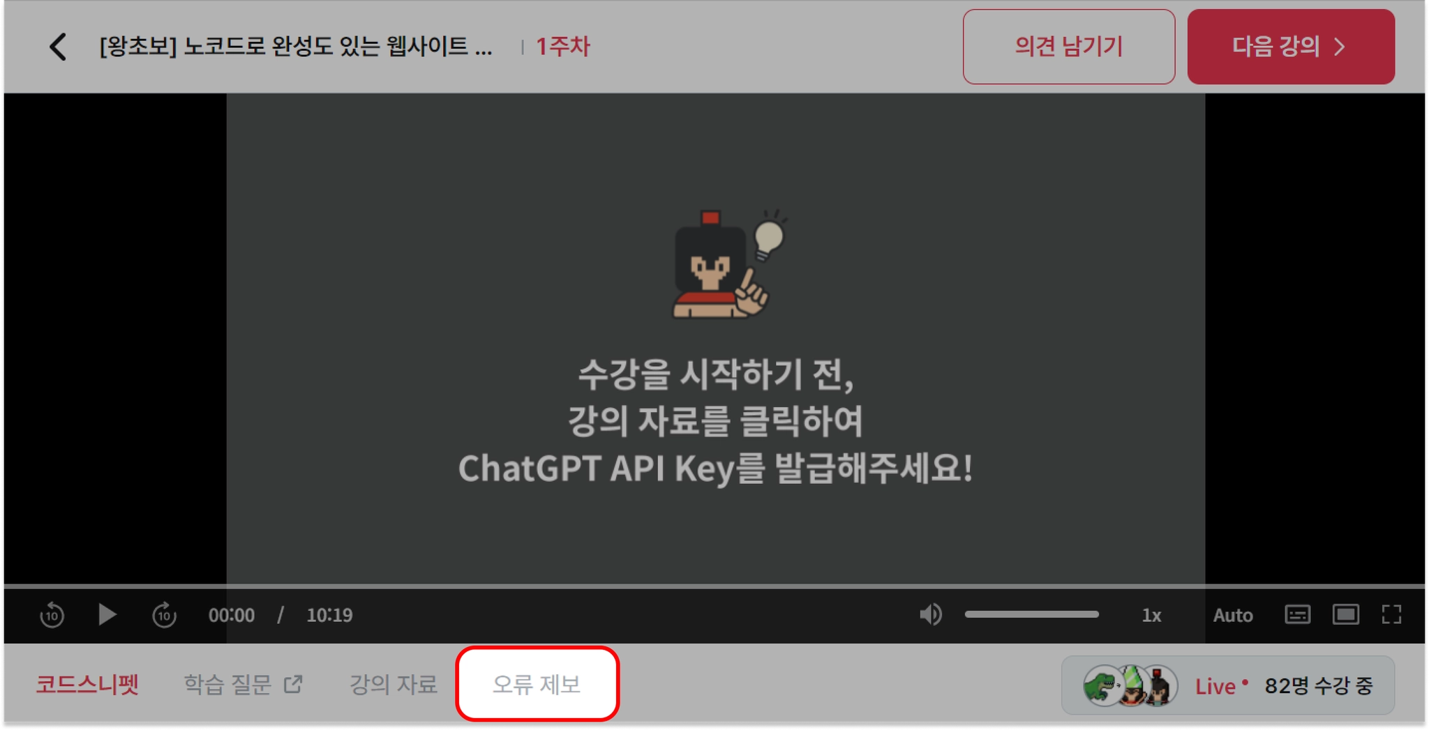 *수강 중, 내용이나 자막 오류 등을 발견했다면 오류 유형에 맞춰 제보해주세요!