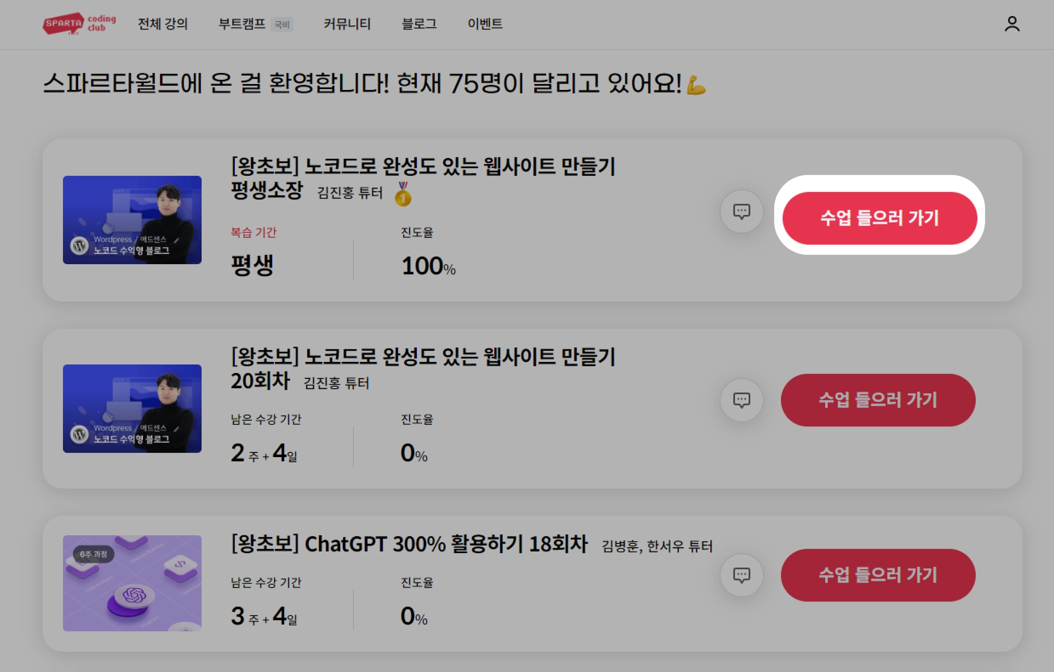 원하는 강의 선택 후 클릭